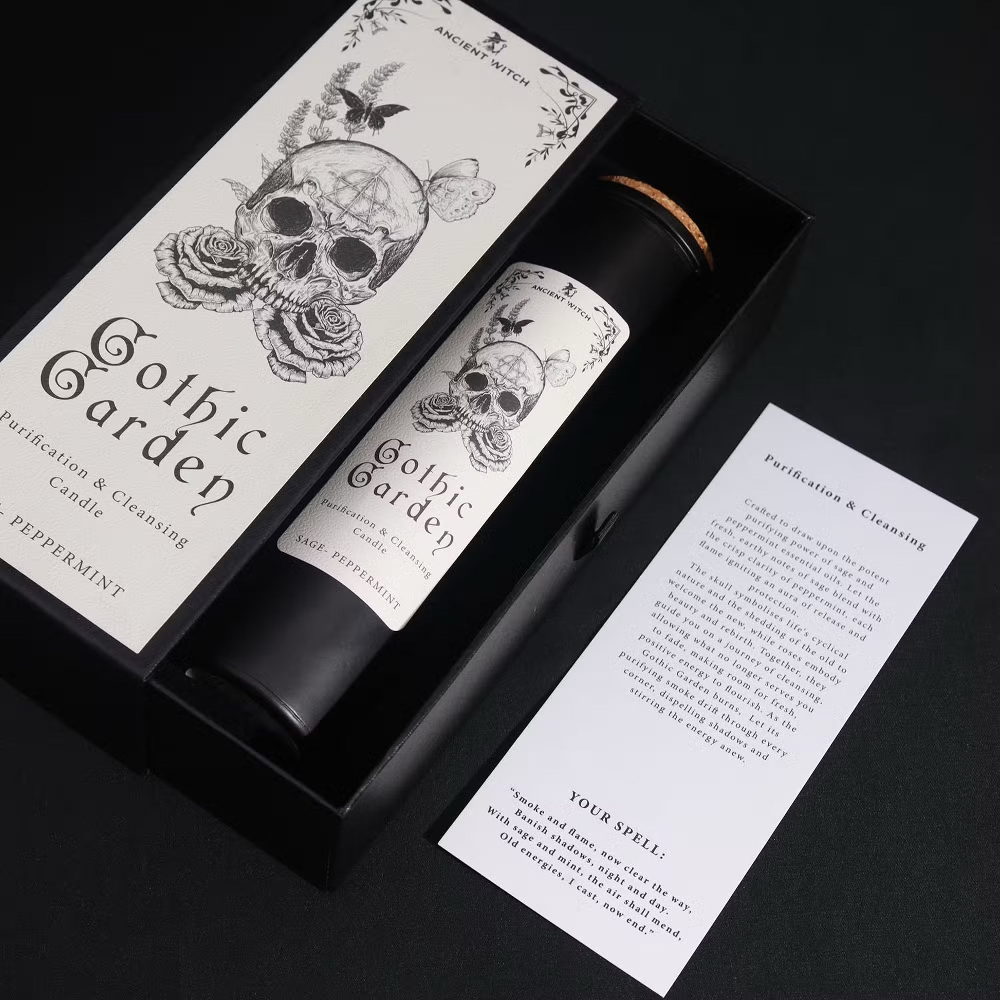 Plongez dans une ambiance mystique avec la bougie de sorcière Gothic Garden – Purification et Nettoyage, une création captivante signée Ancient Witch. Son design orné d’un crâne et de fleurs sombres symbolise la renaissance et la purification des énergies. Cette bougie incarne le renouveau et la protection spirituelle.